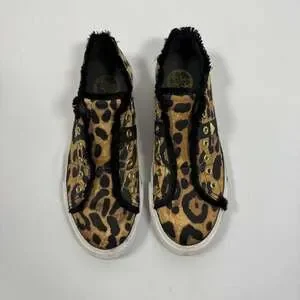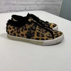 GUESS Elbinah Leopard Low-Top Sneakers. Embrace your wild side with these stylish and comfortable low-top sneakers featuring a bold leopard print. Perfect for adding a fashionable statement to any casual outfit, these shoes are designed for everyday wear. The classic GUESS branding adds a touch of designer appeal. Excellent condition