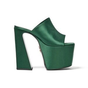 Brandon Blackwell Harlo Platform Mule in Forest Green Satin, size 37