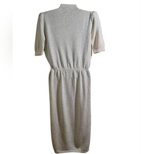 80s St. John Cream Sweater Knit Dress W Belt 6