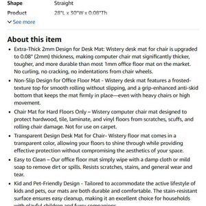 Extra-Thick 2mm Design for Desk Mat: desk mat for chair is upgraded to 0.08" (2mm) thickness, making computer chair mat significantly thicker, tougher, and more durable than most 1mm office floor mat on the market. No curling, no cracking, no indentations from chair wheels.