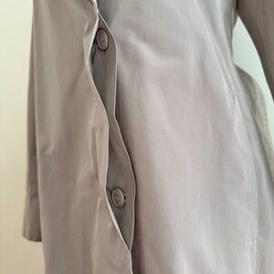 Tags: Max Mara all plain solid sand camel ecru light brown tan khaki neutral natural water repellant cotton twill fabric collared pleats pleating lapel loose slim relax relaxed fit fitting jacket quiet luxury brand the cube gabardine #320