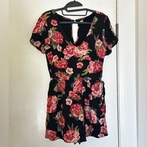 Hollister Floral Print Faux Wrap Romper Skort Size M