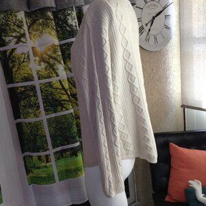 Jeanne Pierre XL Cotton/Chunky Fisherman's Knit, Eclectic Granny, Rolled neck. Beige; 100% Cotton. Shoulders: 18", Pit-pit: 21", Length: 26". Trending style, lightweight, breathable. No visible signs of wear, Gently pre-loved.
