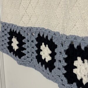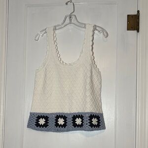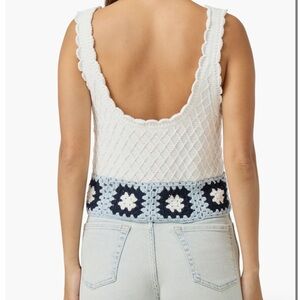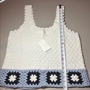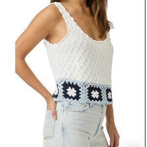 Splendid -Sonia Texture Stitch Tank Sweater White Crochet Tank with Navy Accents