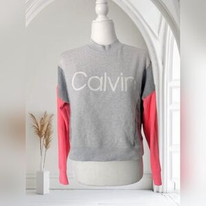 Women's Calvin Klein Performance Grey And Pink Colorblock Sweatshirt Size Medium