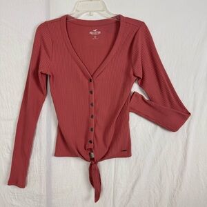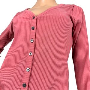 Hollister Henley Button Down V-Neck Long Sleeve Shirt Medium Mauve Pink