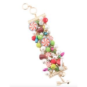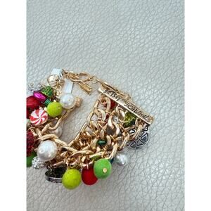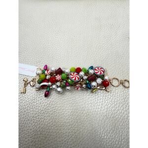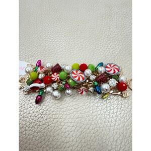 This listing is for a brand new with tags 100% authentic Betsey Johnson statement Christmas candy bracelet