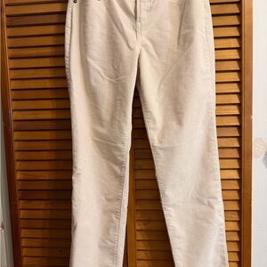 Stylish cream corduroy pants by Carve Designs. Features a classic five-pocket design and button closure.