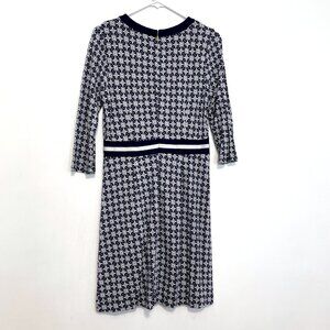 DRAPER JAMES Honeycomb Floral Dress Navy Blue White 3/4 Sleeve Fit & Flare Dress