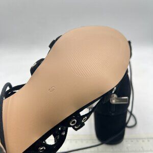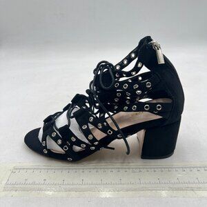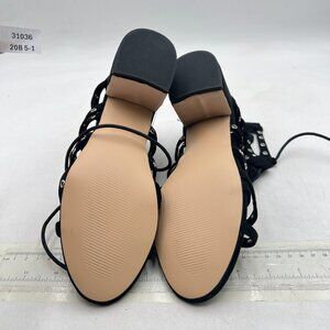 XYD Black Gladiator Caged Block Heel Sandal Open Toe Grommets Straps Zipper Shoe