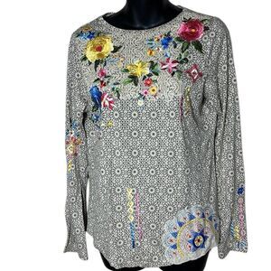 Sundance women’s small bohemian embroidered patterned floral long sleeve top