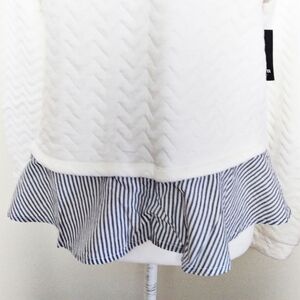 White quilted sweatshirt with blue and white striped underlayer, creating a layered look. Medium petite. New with tags.