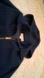 Stylish and comfortable navy blue jacket with a removable hood. Perfect for keeping warm and fashionable.