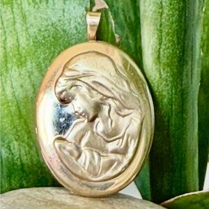 14k gold oval locket pendant necklace featuring a detailed design. Perfect for adding a touch of sophistication to any outfit.5.8g