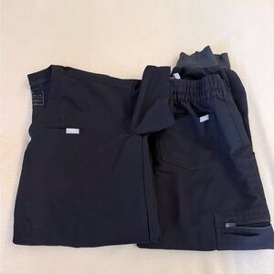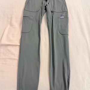 Moss green scrub set by FIGS. Scrub leggings XS and tunic top small. Small hole at cargo pocket of left leg noted in picture. Pet free and smoke free home.