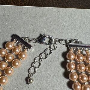 Chic multi-strand peach necklace. Perfect for any occasion. Adds elegance effortlessly.