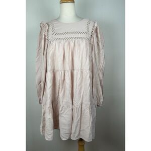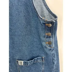 This preowned denim jumper dress is in good condition.