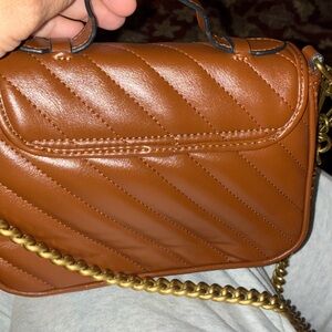 Elegant Gucci Marmont mini bag in brown. Features quilted design and gold logo detail. Perfect for any occasion.