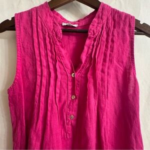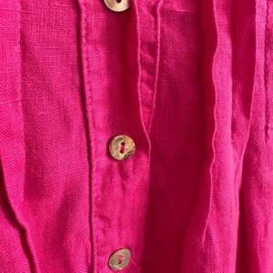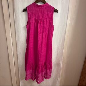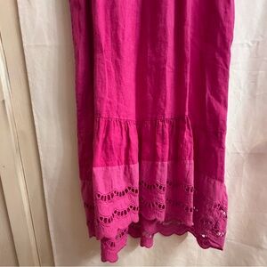 Rosemarine 100% Linen Embroidered Ruched Hem Midi Dress in Bright Fuchsia. Size small.