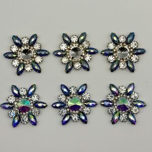 Set of 6 Aurora borealis AB and rhinestone crystal appliqué set, ideal for performance wear, dance, cosplay, bridal, skating.