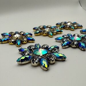 Aurora borealis AB crystal/rhinestone ~2" embellishments (6) flat-back snowflake