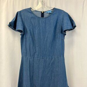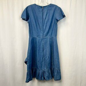 Draper James Womens Dress Blue Chambray Ruffle Knee Length Short Sleeve Size 2