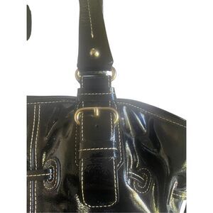 Dooney & Bourke Black Patent Leather Satchel Bag in excellent Preowned condition , very clean, minor scuffing, small cut on front (see pics)