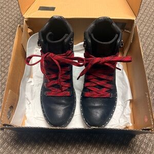 Comes with dust bag and box. Brand is designed to have a slightly worn look to the leather.