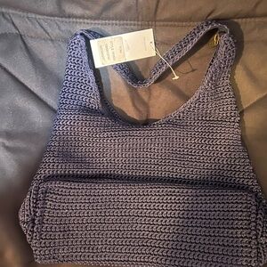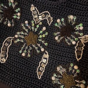 Stylish crochet shoulder bag with intricate floral embroidery. Features a unique design with a comfortable strap.