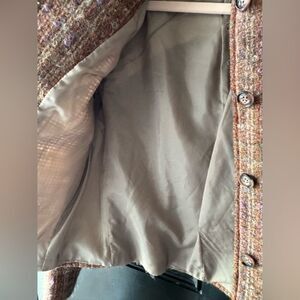 VTG Wool Orange Striped Blazer Jacket Size XS/S No Brand or Care Label Ladies Union Made in USA Excellent Condition Fuzzy Wool Look Button Closure Fully Lined Labeled size 6- check measurements 21” Long 23” Sleeve 17” PTP 17” Waist