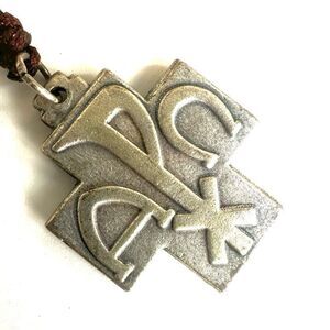 Car mirror wooden alpha omega vintage cross rosary