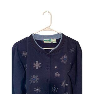 Vintage Y2k Shenanigans Womens Size Large Sweatshirt Navy Blue Blue White Snowflake Embroidered Long Sleeve