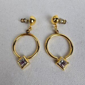 Vintage 80s Gold Tone Crystal Drop Earrings