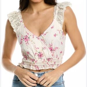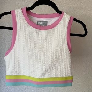 Beach Riot White Crop Top with Pink, Blue, and Green Trim