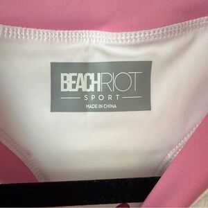 Beach Riot Gwen Top. Stylish crop top with colorful trim. Features pink, blue, and green accents. Perfect for a trendy look.