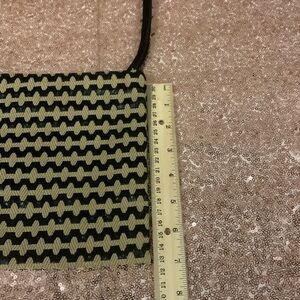 Vintage Reva Black and Tan Fabric Purse With Black Suede Strap and Tassel