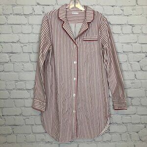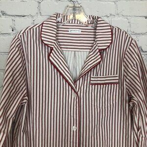 Red Land Cotton Red White Striped Pajama Sleep Shirt Size M 100% Cotton
