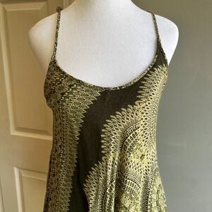 India Boutique Green Patterned Sun Dress Sleeveless Casual Lightweight Dress
