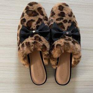 Kate Spade Leopard faux fur slide/mule with black bow adorned with the iconic Kate Spade "spade", MINT CONDITION! Dress it up or down.