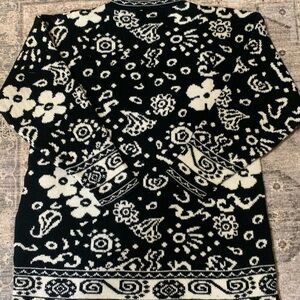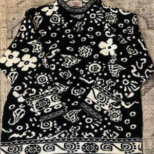 Vintage 80’s ADELE Acrylic Black & white Geometric Flower Sweater
