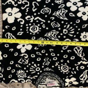 The Vintage 80's ADELE Acrylic Geometric Flower Black & White Sweater is a stylish piece of women's vintage clothing that showcases a unique geometric design with a black and white color scheme. Made from acrylic material, this sweater exudes a retro charm that is perfect for those looking to add a touch of vintage flair to their wardrobe. The classic black and white color combination and geometric pattern make this sweater a versatile and timeless addition to any outfit. The tag does not show a size, measurements are approximately a L/XL. This item is vintage and has wear from use and age but is absolutely beautiful!