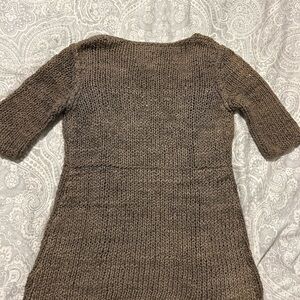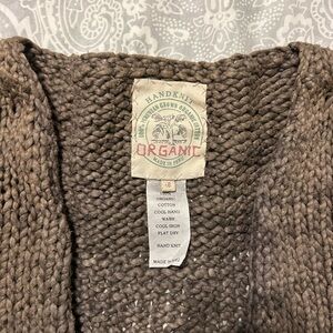 Beautiful natural hand knit organic 100% Peruvian grown organic cotton cardigan. It’s a mixture of browns and has a perfect natural homemade vibe. The sleeves are a little longer than short sleeves. It’s in good condition!