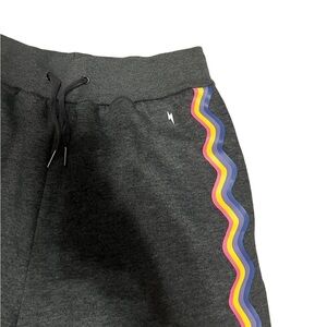Clean and smoke free home. Electric Yoga rainbow jogger. Relaxed fit with side pocket. Women’s M. Waist 14.5” with stretch. Great thick comfortable joggers. In excellent preowned condition. Fast shipping. All reasonable offers accepted.