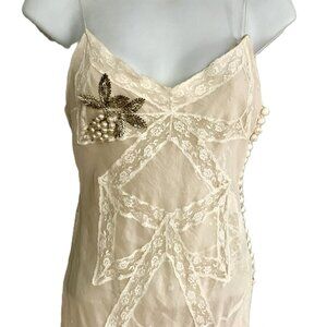 A breathtaking and rare Christian Dior Boutique Paris vintage soft ivory/cream slip dress, crafted in delicate silk with couture-level lacework and hand- beaded details.