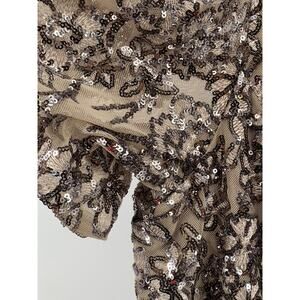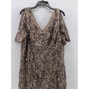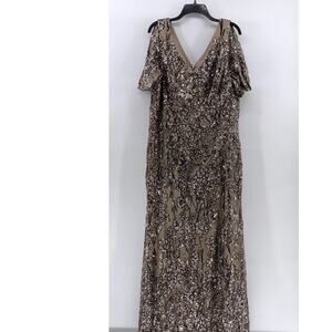 ALEX EVENINGS Women's Beige Sequin Embellished Short-Sleeve A-Line Gown SZ 20