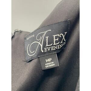 ALEX EVENINGS Women's Petite Black Shimmer Cold-Shoulder Draped Dress SZ 14P
