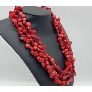 925 Sterling Clasp 19" Triple Strand Mediterranean Red Coral Necklace