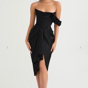 Janis Black Satin Corset Midi Dress by House of CB