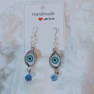 Mystic Blue Evil Eye Dangle Earrings. 6 Cm