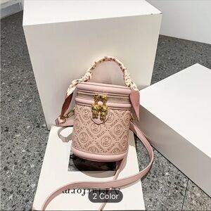 BRANDNEW cylinder bear-embossed bucket bag. Super cute bag with scarf decoration and adorable bear zipper. Can be used as a shoulder bag or a top handle purse. This listing is for the PINK colour bag not the beige one.